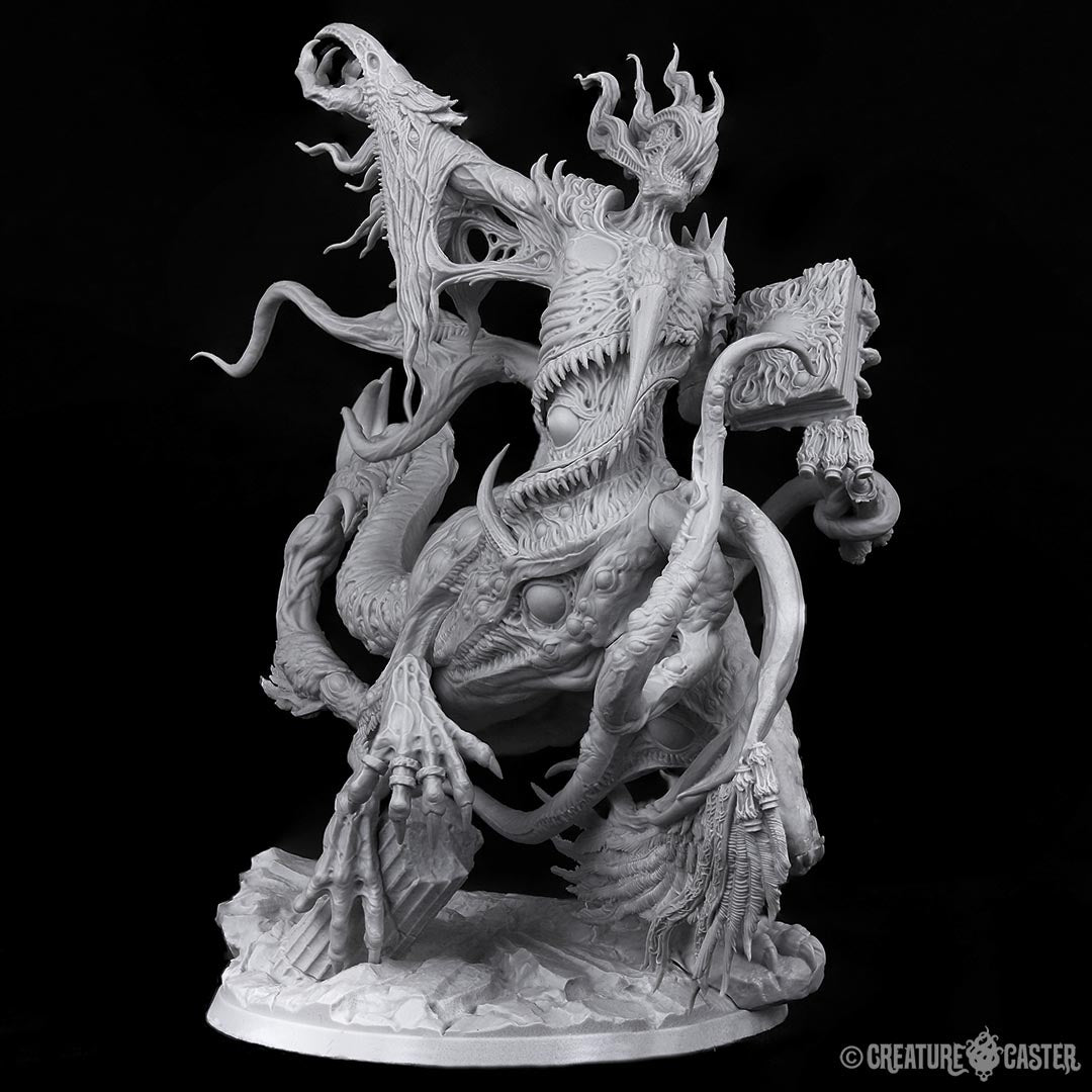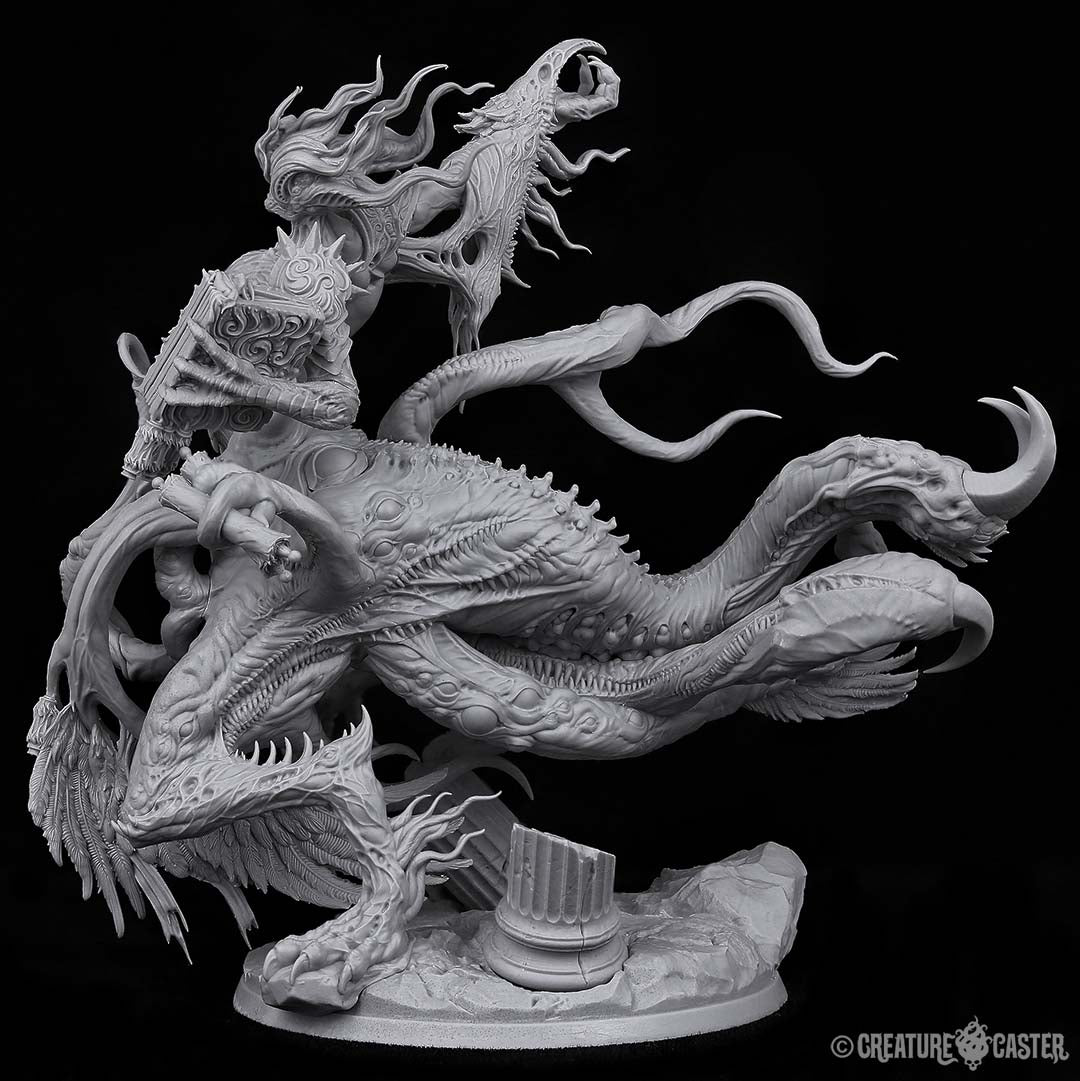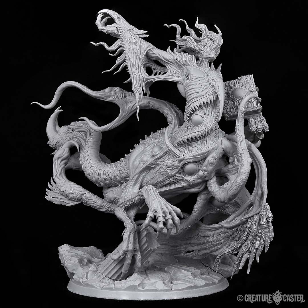 When enough energy is harvested, the King of Malifica rapidly evolves. His followers will often gaze in awe as light begins to leak from his primitive form – a kaleidoscope of blindingly bright colors that did not previously exist within their visual spectrum. What emerges from this cocoon of energy is not the beatific god that they expected. Instead, a Resplendent King of Malifica – in his full demonic glory – bursts forth and falls upon his deluded worshippers in a tide of magical slaughter.
