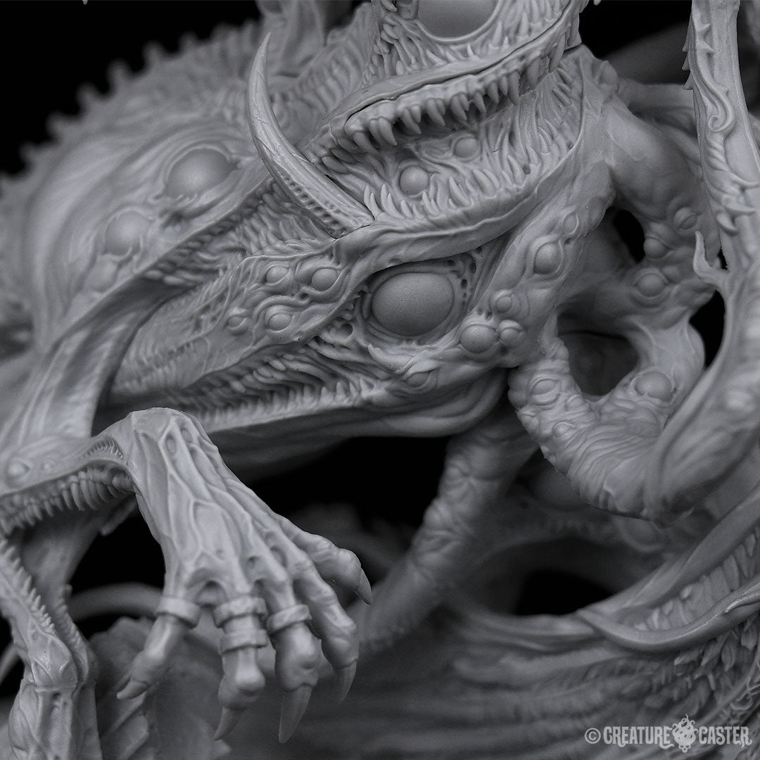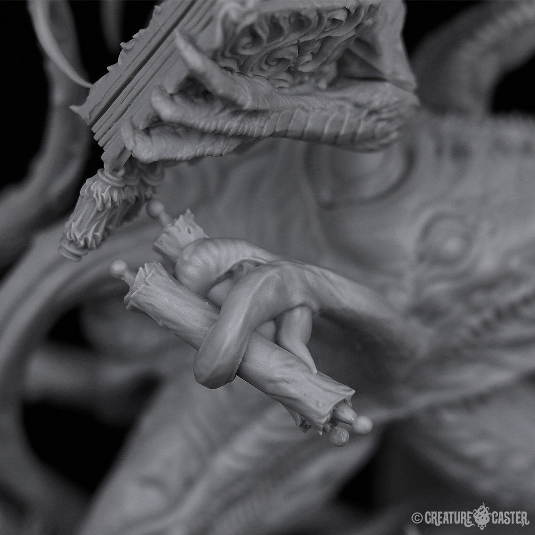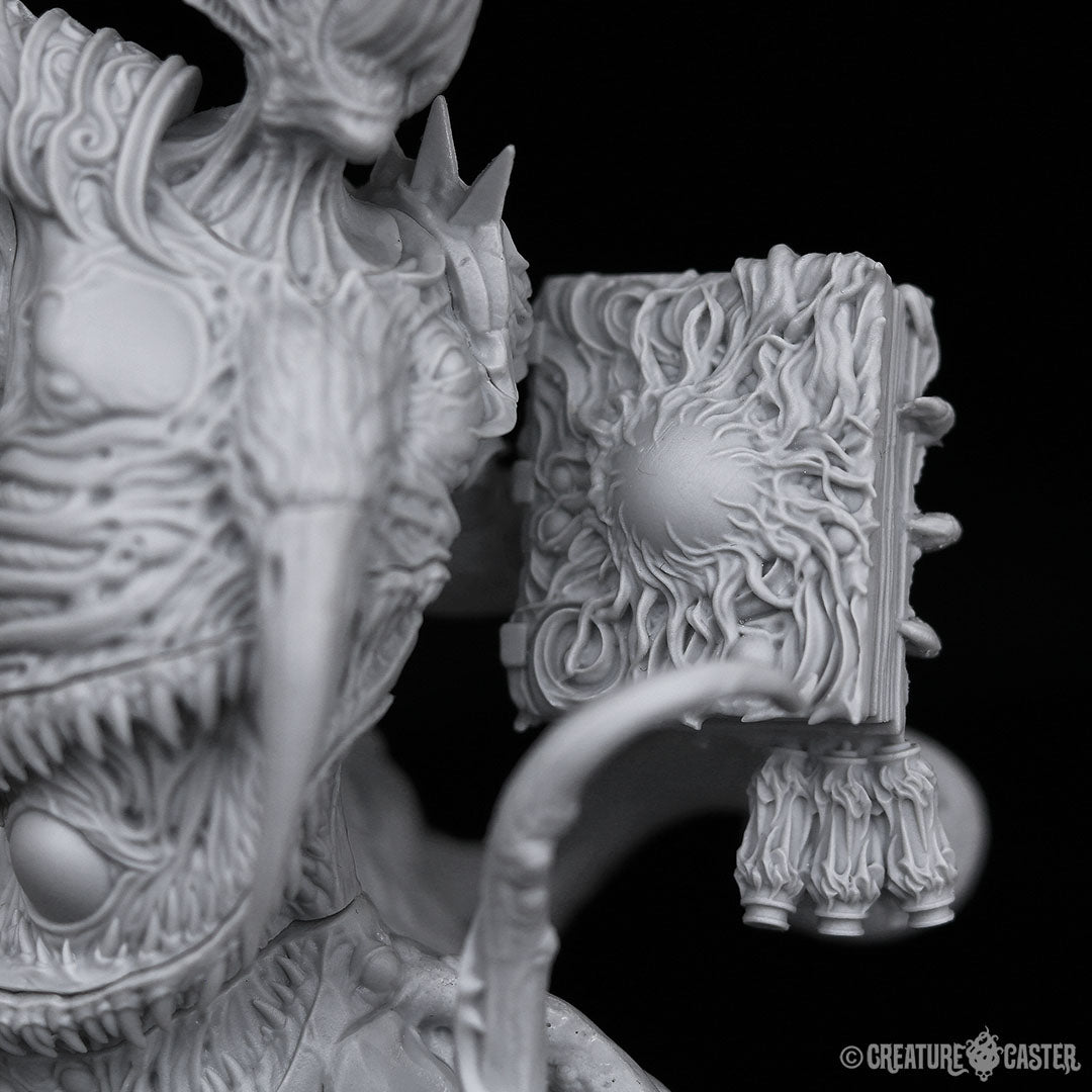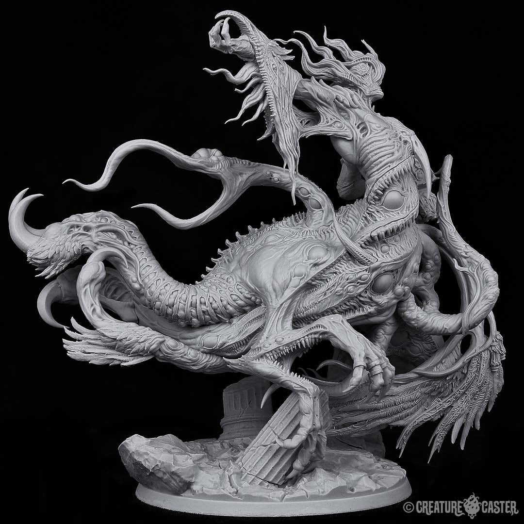 When enough energy is harvested, the King of Malifica rapidly evolves. His followers will often gaze in awe as light begins to leak from his primitive form – a kaleidoscope of blindingly bright colors that did not previously exist within their visual spectrum. What emerges from this cocoon of energy is not the beatific god that they expected. Instead, a Resplendent King of Malifica – in his full demonic glory – bursts forth and falls upon his deluded worshippers in a tide of magical slaughter.